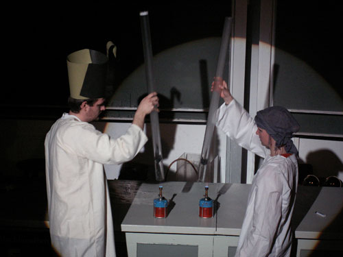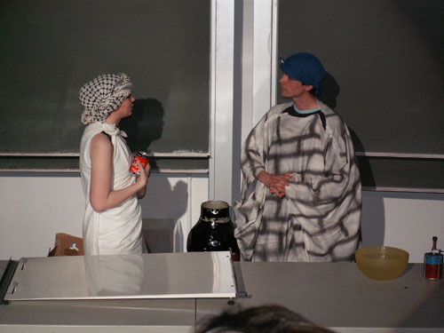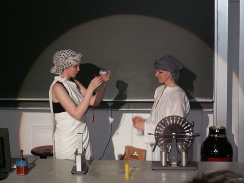 seiner Architektin über den Plan den Tempel durch eine Pyramide zu