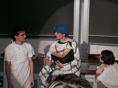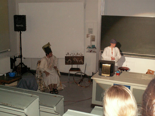 versucht Jünger für seinen Tempel zu werben und den Bau der Pyramide zu